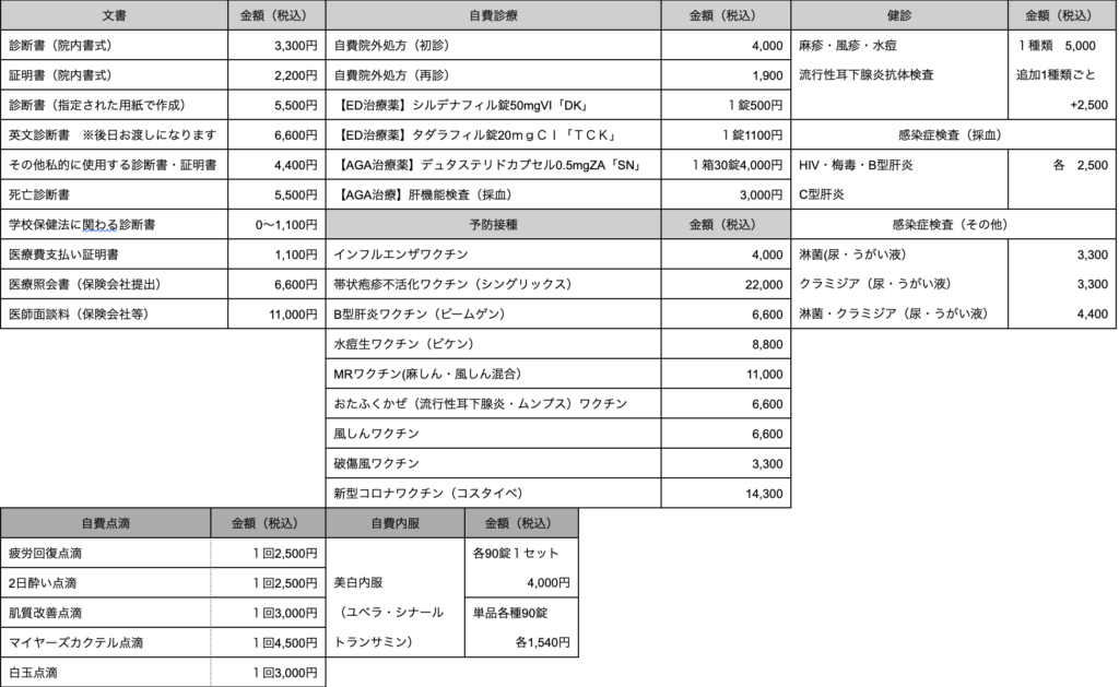 当院では、健康保険法の療養費用や介護保険法に該当しない下記の保険外費用について、その料金や利用数に応じてご負担をお願いしております。費用が発生しましたら、その都度請求をさせていただきます。
